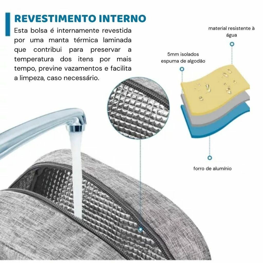 Função térmica: Para manter a temperatura de alimentos FRIOS e o tempo de degelo informado, 20% da capacidade da bolsa deve ser preenchida com gelo (dentro de um saco ou de um pote), gelox ou até mesmo com água congelada dentro de uma garrafa pequena, que caiba na bolsa junto aos outros itens. Para manter a temperatura de alimentos QUENTES, a dica é armazená-los recém aquecidos, em potes que ofereçam proteção ao revestimento da bolsa contra calor excessivo.