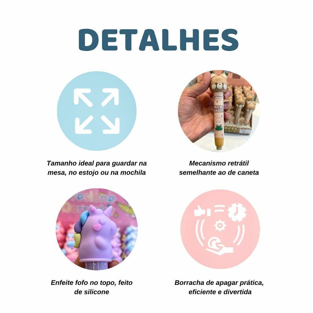 Ideal para quem busca mais que uma simples borracha, este item combina eficiência, praticidade e criatividade. Além de apagar de forma eficiente qualquer graduação de grafite — seja de lápis ou de lapiseira —, sem danificar o papel, sua forma de caneta com enfeite no topo encanta crianças, estudantes e profissionais.