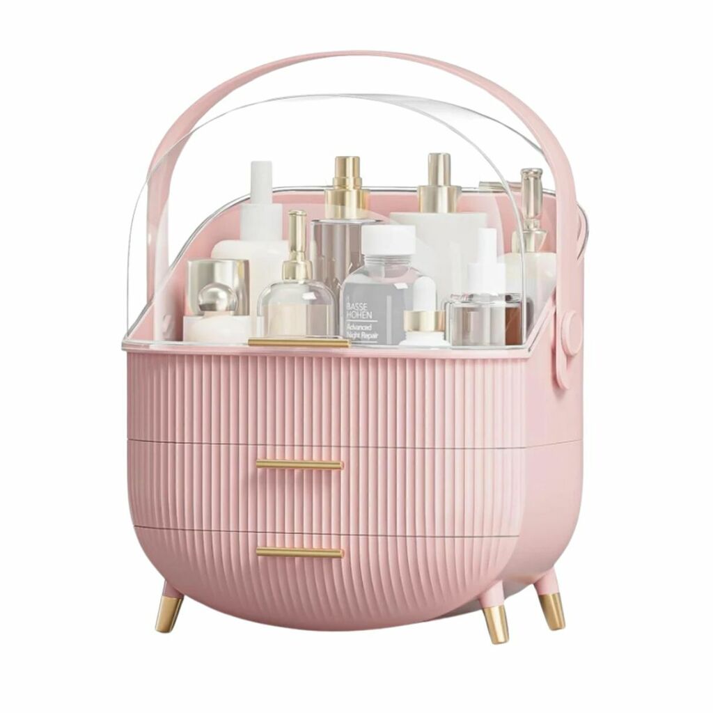 Mantenha suas maquiagens e seus cosméticos — entre outros objetos também — sempre organizados e acessíveis com o nosso *Porta-objetos maleta de cosméticos* de 3 compartimentos. Com um design prático e elegante, ele permite que você armazene de forma eficiente seus produtos de cuidados pessoais, entre outros materiais de trabalho e de estudos.