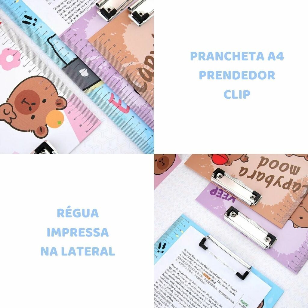 Esta prancheta possui um design divertido, com ilustrações de capivara, tornando-a perfeita para estudantes e profissionais. Compacta e leve, ela é ideal para uso em escolas, escritórios, consultórios ou para atividades ao ar livre, garantindo suporte firme para anotações, preenchimento de formulários e desenhos.